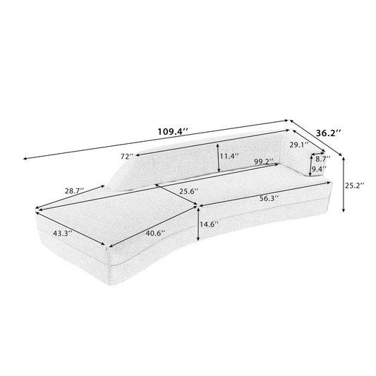 109.4" Curved Chaise Lounge Modern Indoor Sofa Couch for Living Room, Beige