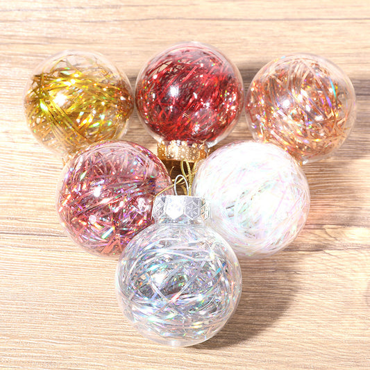 Christmas Ball Transparent PET Laser Silk Grass Ball Christmas Tree Pendant Decoration Props 4PCS per box