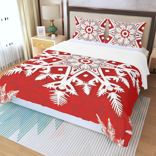 LCM23 Red Snowflake Three Piece Duvet Bedding Set