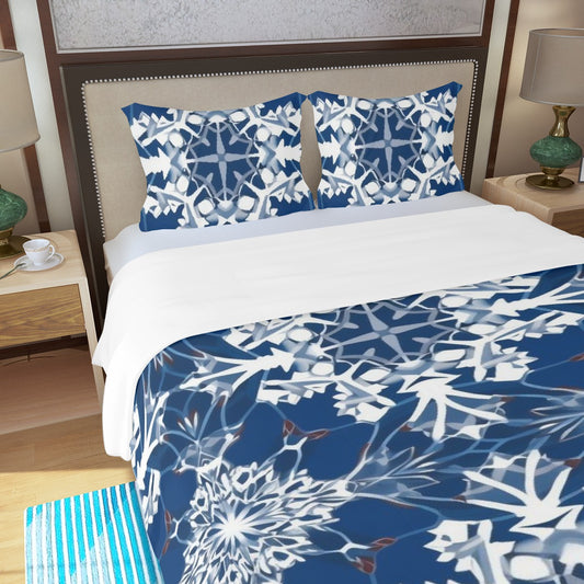 LCM23 Blue Snowflakes Three Piece Duvet Bedding Set