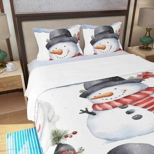 LCM23 Snowman Love Xmas Three Piece Duvet Bedding Set