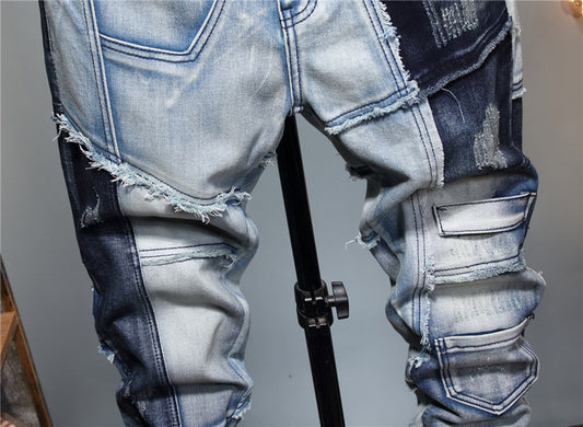 European And American Stitching Color-blocking Stretch-footed Men's Jeans
