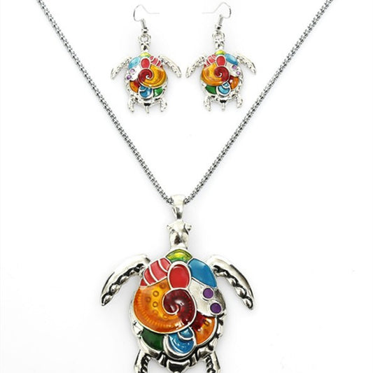 High Profile Fashion Punk Dripping Oil Rainbow Turtle Necklace And Earrings Suite