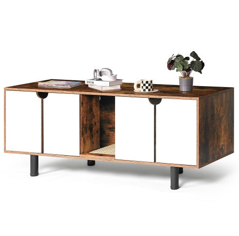 Indoor Cat House Cabinet TV Stand End Table, White Vintage Litter Box for 2