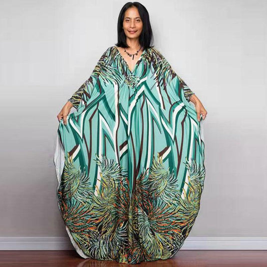 Polyester Printed Loose Robe Vacation Sun Protection Shirt Blouse