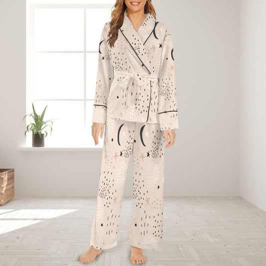 LCM23 Moon & Stars Tie Waist Pocket Long Pajama