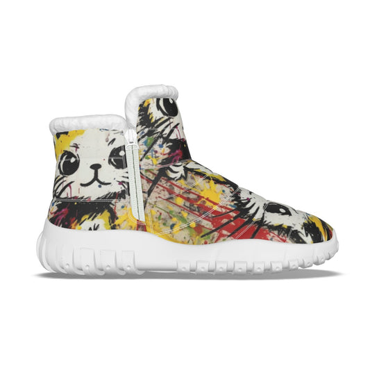 LCM23 Colorful Kitty All-Over Print Women's Zip-up Snow Boots
