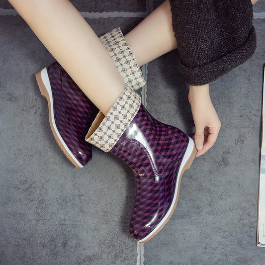Fashion Mid-tube Boots With Zipper Design Non-slip Thick Sole Elastic Knitted Patchwork Boots