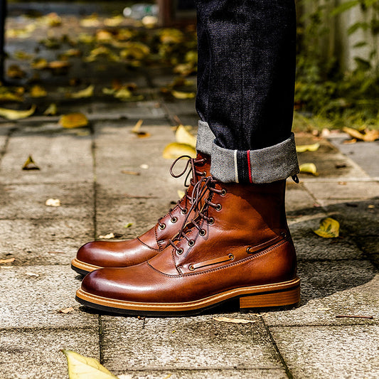 Thick-heeled Lace Belt Buckle Cowgirl Boots