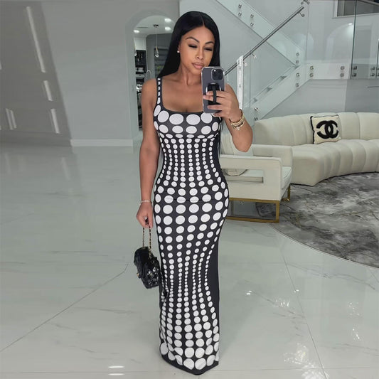 European And American Dot Sexy Hollow-out Camisole Backless Fashion Dress