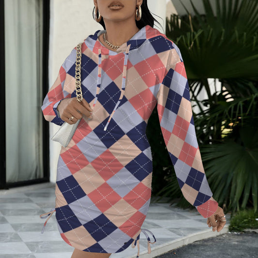 LCM23 Heart of Plaid Long Sleeve Hooded Drawstring Sweatshirt Dress