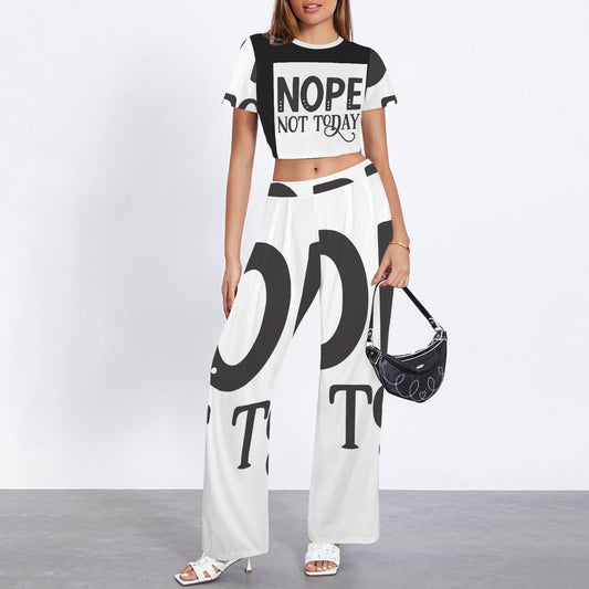 LCM23 Nope Not Today Crew Neck Short Sleeve Crop Top & Wide Leg